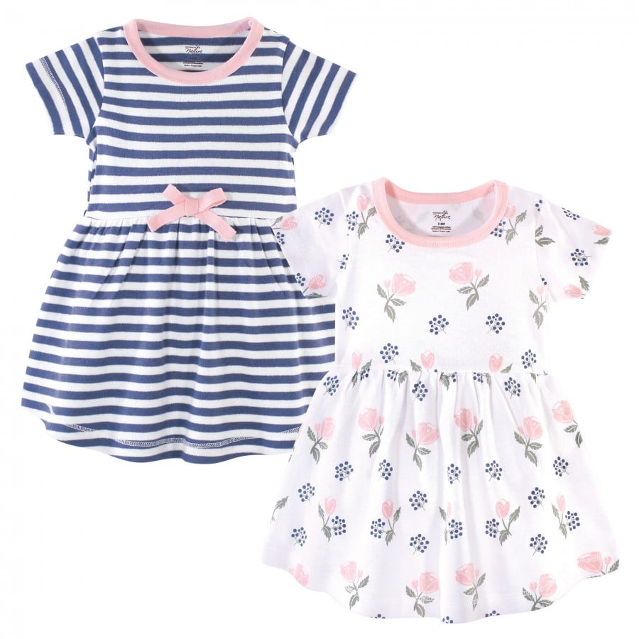 Touched By Nature Baby And Toddler Girl Organic Cotton Short Sleeve Dresses 2pk Rose And Berries 9 12 Months Walmart Com